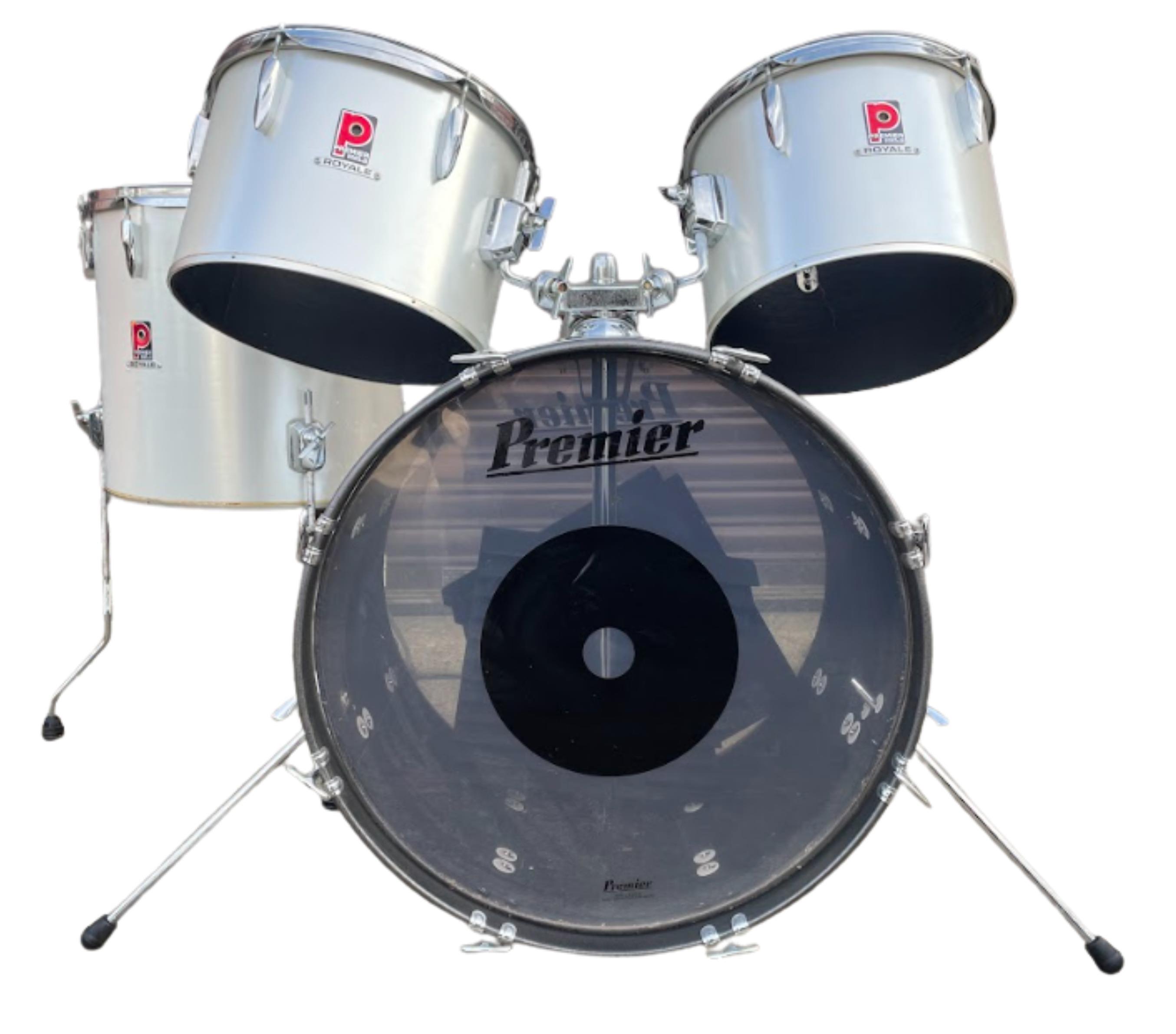 This vintage Premier Royale Concert Drum kit is ideal as a prop for Film / TVComplete with original premier heads, this 1982 Shell Kit is the real deal when looking for a vintage 80's Drum kit.The colour is original "Marine Oyster"